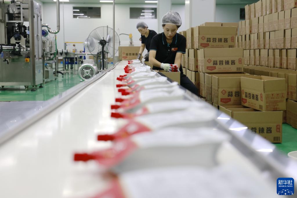 9月12日,唐山市豐南區一辣椒加工企業(yè)的工人在辣椒醬包裝車(chē)間工作。