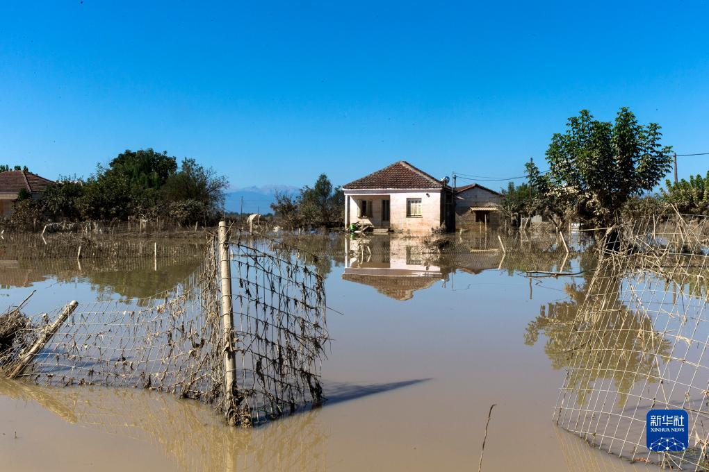 9月12日,希臘中部卡爾季察地區的一處村莊的房屋淹沒(méi)在水中。