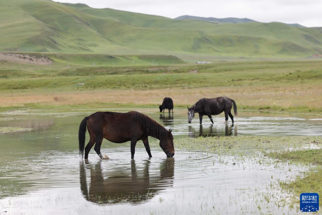 8月17日,在青海省黃南藏族自治州河南蒙古族自治縣多松鄉多松村,扎西曲培的女兒仁青卓瑪在放牧。新華社記者 張龍 攝