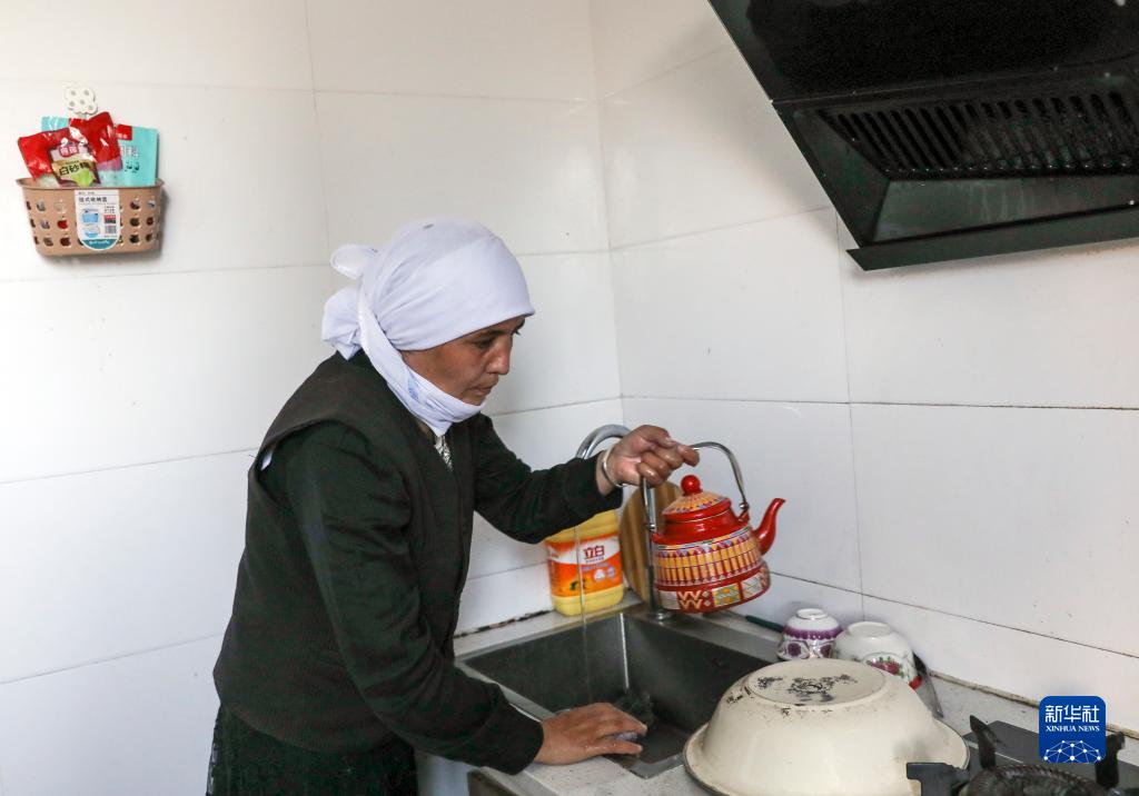 9月5日,拉齊尼的妻子阿米娜·阿力甫夏在自己家中燒茶。新華社記者 程婷婷 攝