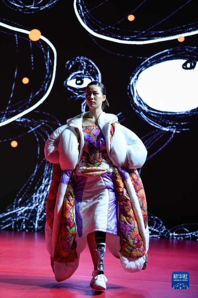 胡月在四川師范大學(xué)服裝與設計藝術(shù)學(xué)院2023優(yōu)秀畢業(yè)作品發(fā)布會(huì )上走秀(5月27日攝)。新華社記者 唐文豪 攝
