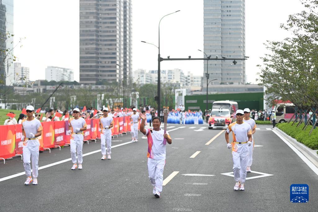 當日,杭州亞運會(huì )火炬在浙江省臺州傳遞。