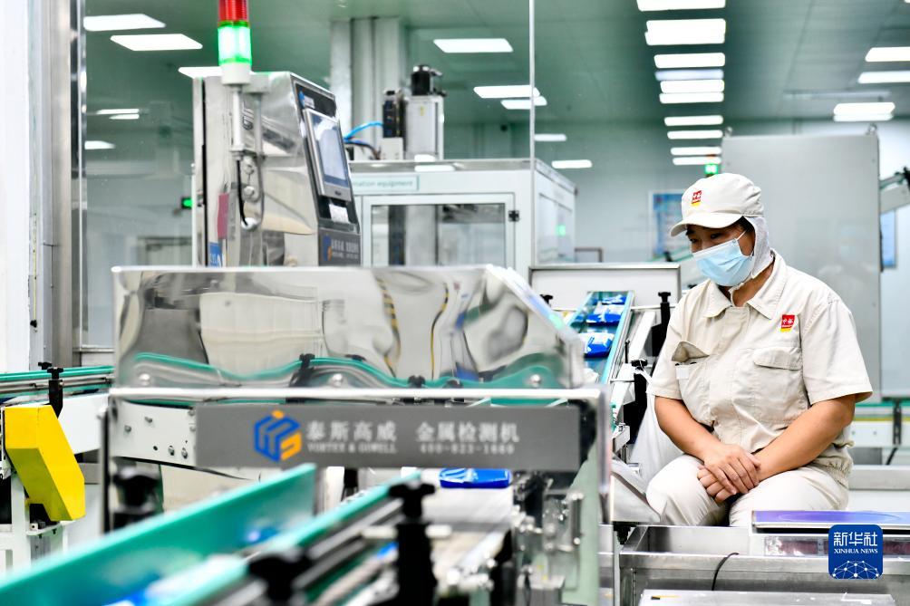 9月12日,在濱州中裕食品有限公司掛面生產(chǎn)車(chē)間,工作人員在流水線(xiàn)上值守。