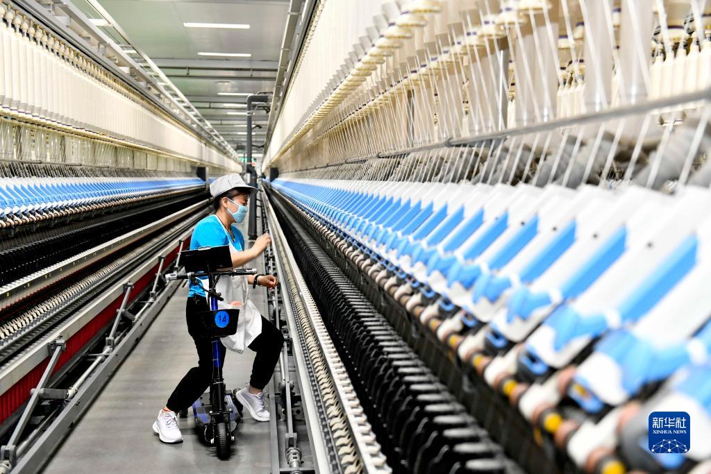 9月13日,在山東宏儒紡織科技有限公司綠色智能化生產(chǎn)車(chē)間,工作人員在加工高端紗線(xiàn)。