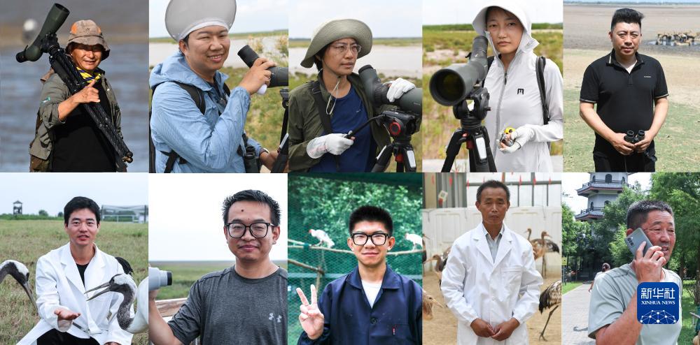 下排從左至右:江蘇鹽城國家級珍禽自然保護區姜官宏(2023年8月21日,新華社記者楊磊攝);江蘇鹽城國家級珍禽自然保護區李征浩(2023年8月21日,新華社記者楊磊攝);江蘇鹽城國家級珍禽自然保護區蔡新杰(2023年8月21日,新華社記者楊磊攝);江蘇鹽城國家級珍禽自然保護區陳衛華(2023年8月21日,新華社記者季春鵬攝);江蘇大豐麋鹿國家級自然保護區徐安宏(2023年8月19日,新華社記者楊磊攝)。