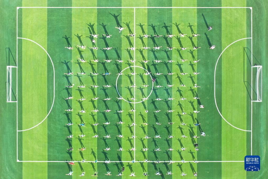9月13日,雄安史家胡同小學(xué)學(xué)生在操場(chǎng)做體操(無(wú)人機照片)。