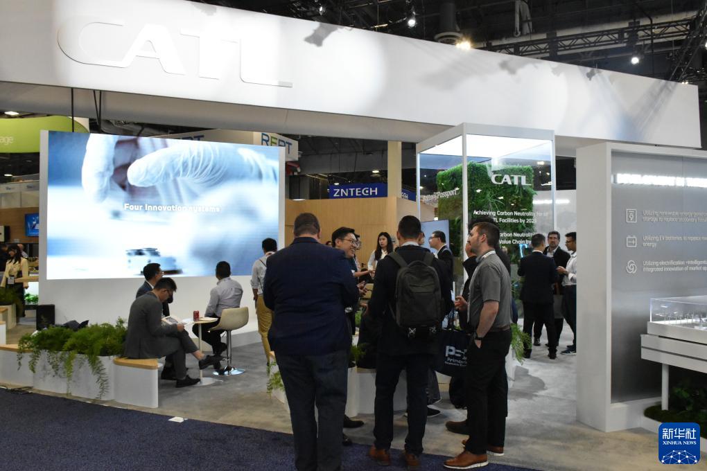 9月12日,人們在美國拉斯維加斯舉行的北美最大清潔能源展會(huì )RE+展會(huì )上參觀(guān)中國企業(yè)寧德時(shí)代展區。