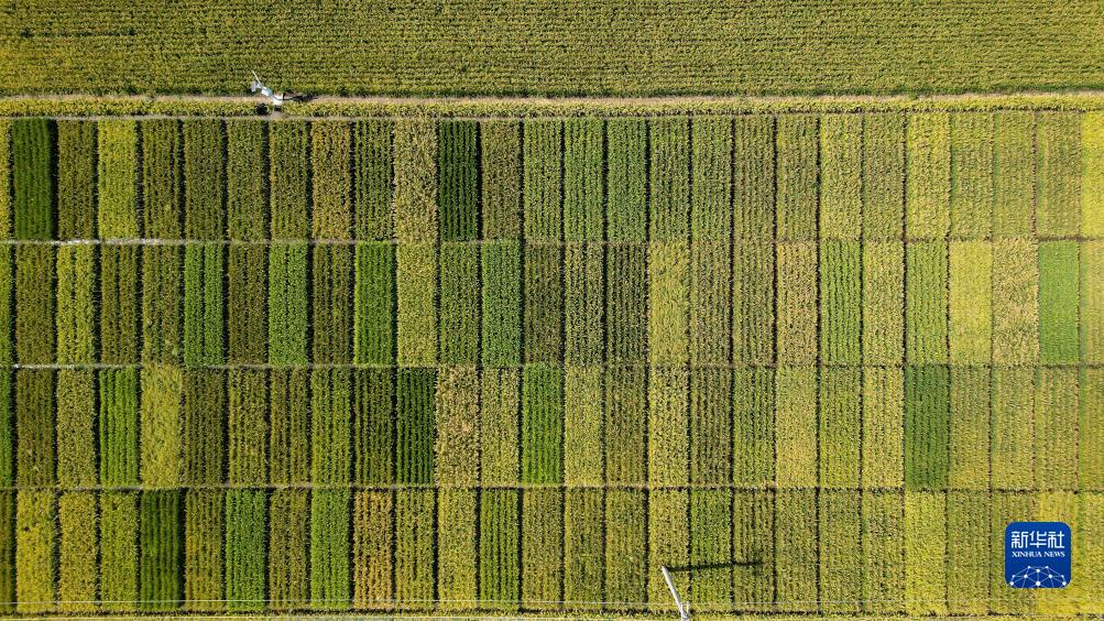 樂(lè )亭縣數字循環(huán)農業(yè)智慧園區內由鹽堿地改良而成的水稻試驗田(9月14日攝,無(wú)人機照片)。