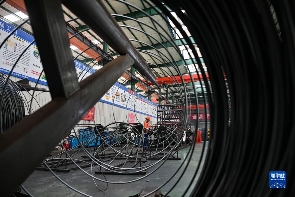9月14日,工人在渝湘高鐵重慶至黔江段站前3標智能化鋼構廠(chǎng)作業(yè)。