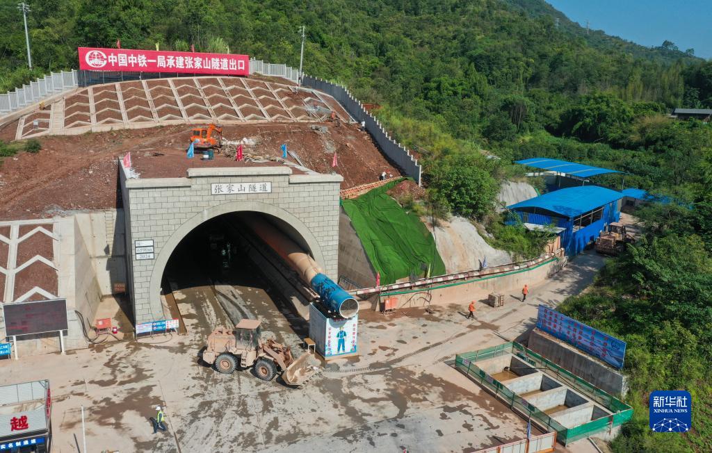這是9月14日拍攝的建設中的渝湘高鐵重慶至黔江段站前3標張家山隧道(無(wú)人機照片)。