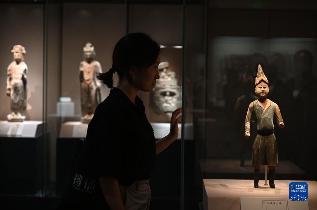 9月14日,觀(guān)眾參觀(guān)甘肅武威慕容智墓出土的木質(zhì)胡人俑。