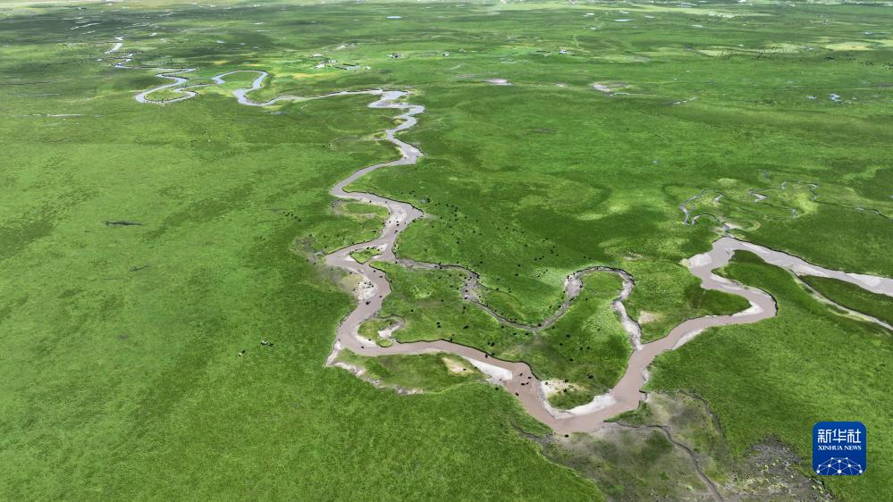 這是瑪曲縣阿萬(wàn)倉濕地景色(7月6日攝,無(wú)人機照片)。