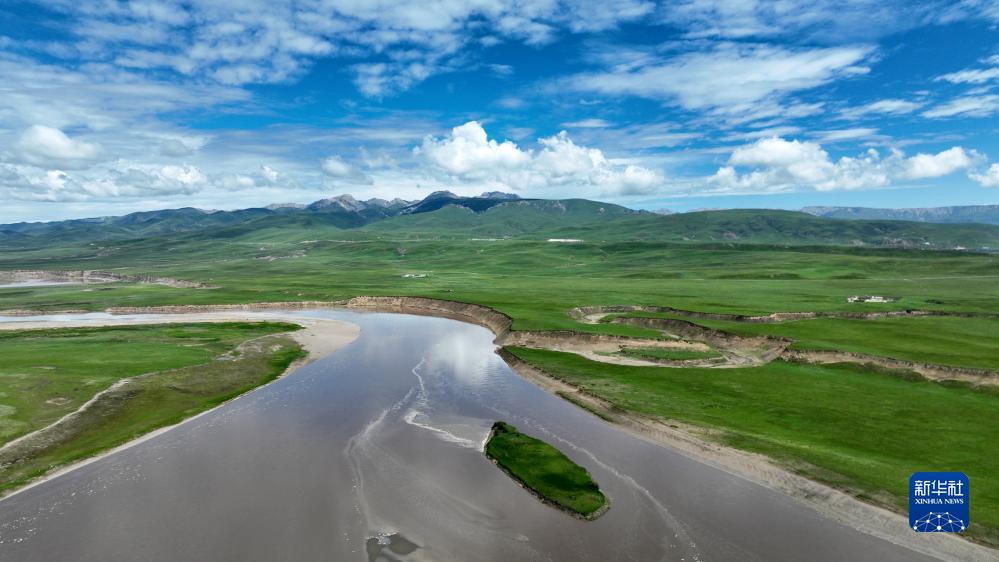 黃河流經(jīng)甘南藏族自治州瑪曲縣境內(7月6日攝,無(wú)人機照片)。