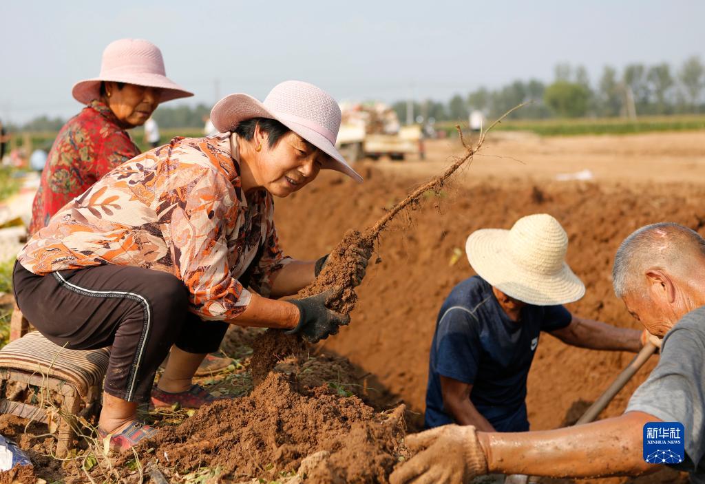 9月15日,河南省焦作市溫縣黃莊鎮米莊村農民在田間收獲鐵棍山藥。