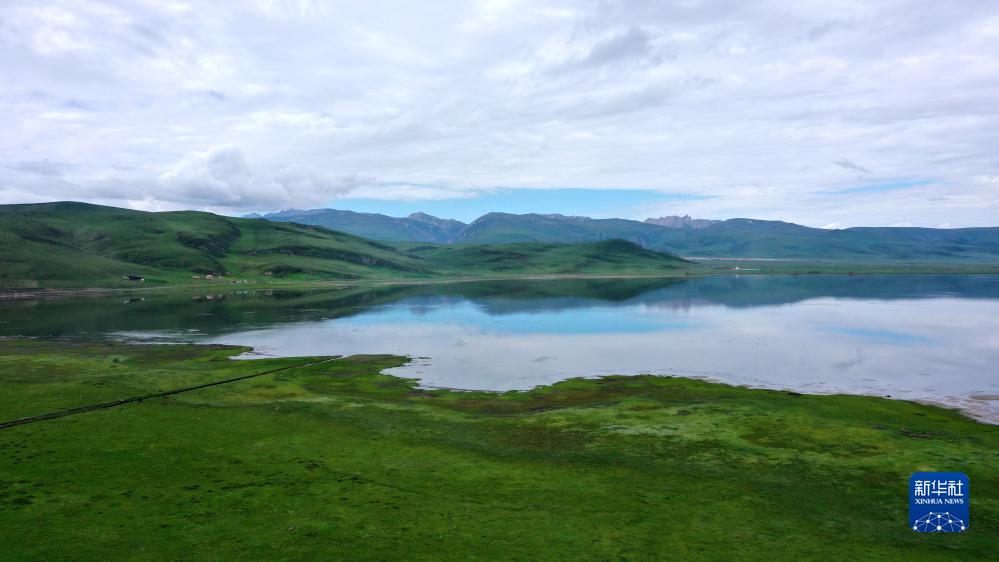 這是甘肅尕海則岔國家級自然保護區尕海湖的景色(7月7日攝,無(wú)人機照片)。