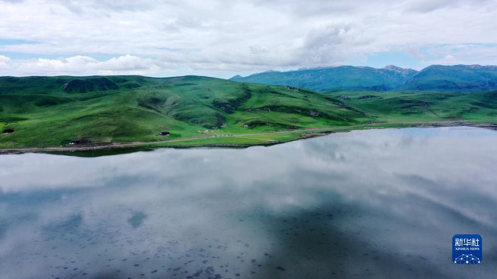 這是甘肅尕海則岔國家級自然保護區尕海湖的景色(7月7日攝,無(wú)人機照片)。