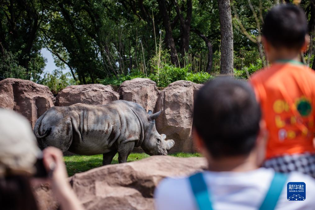 9月16日,游客在武漢動(dòng)物園參觀(guān)犀牛。