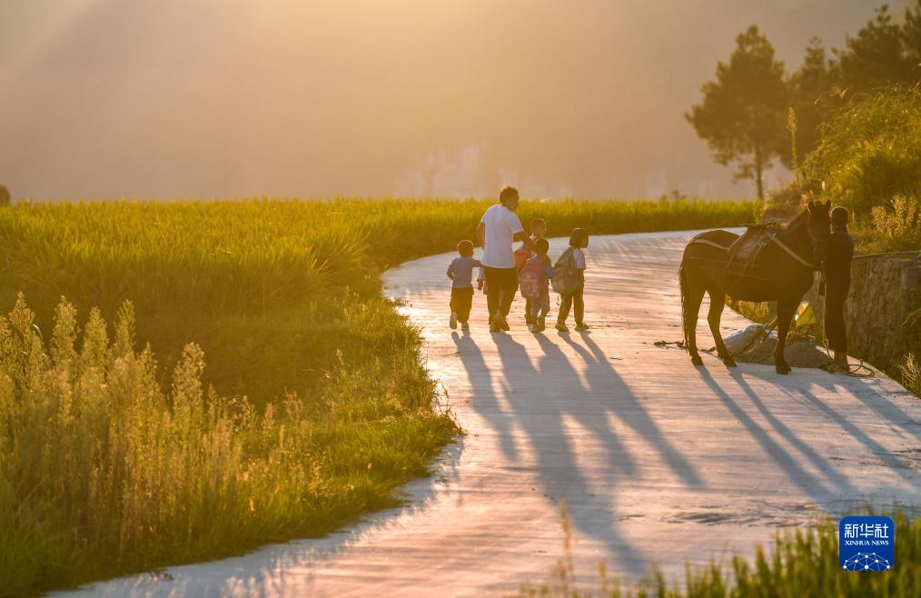 陸成文在護送學(xué)生放學(xué)回家途中(9月6日攝)。