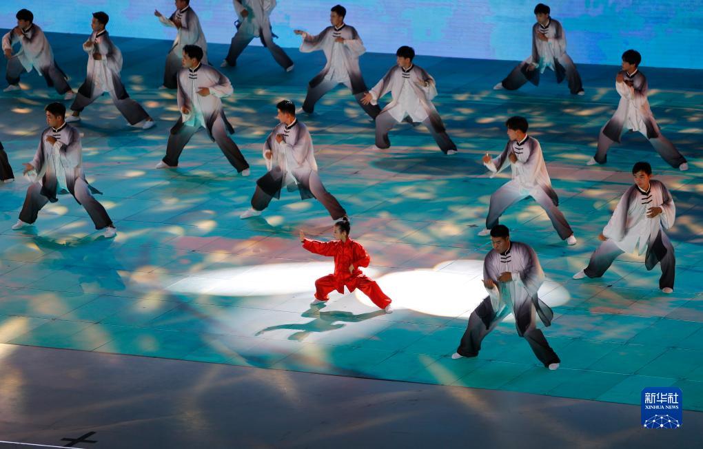 9月16日拍攝的第十一屆中國·焦作國際太極拳大賽暨2023云臺山旅游節開(kāi)幕式文藝演出現場(chǎng)。