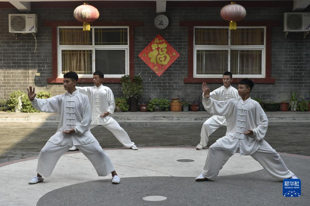 9月15日,河南溫縣陳家溝一家武術(shù)學(xué)校的學(xué)員在練習太極拳。