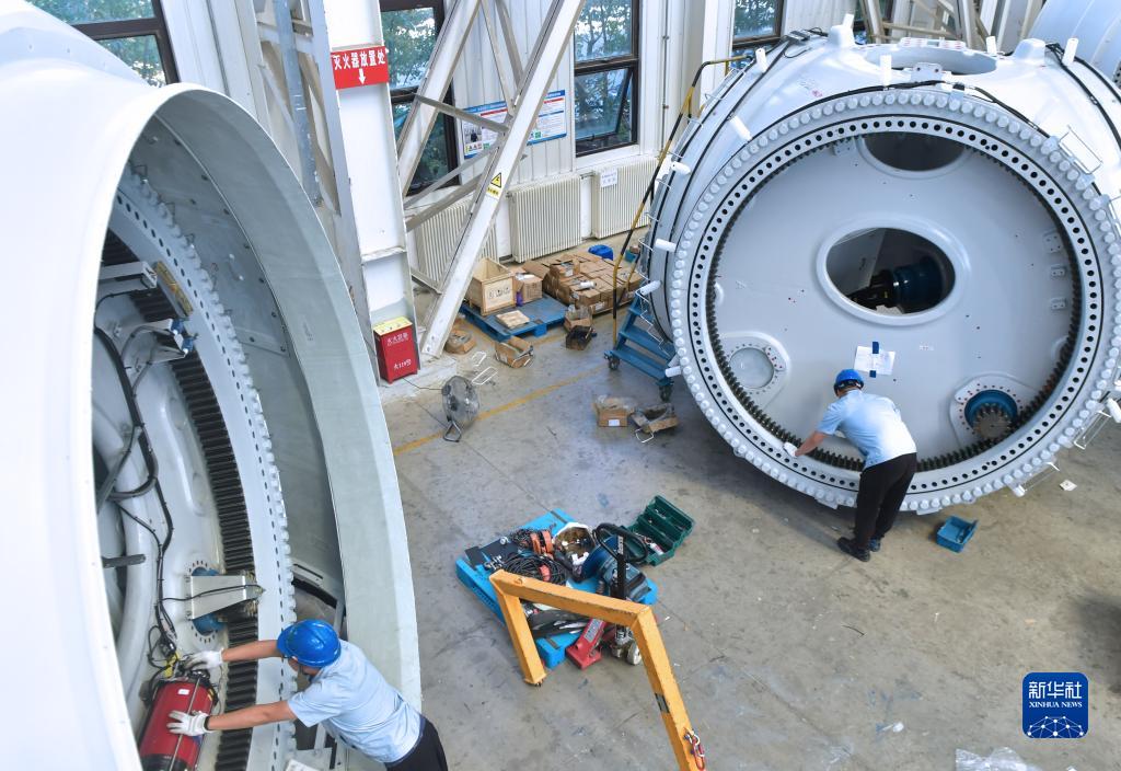 9月13日,中國船舶集團旗下中船海裝大連公司的裝配工在進(jìn)行海上風(fēng)電機組變槳集中潤滑工作。