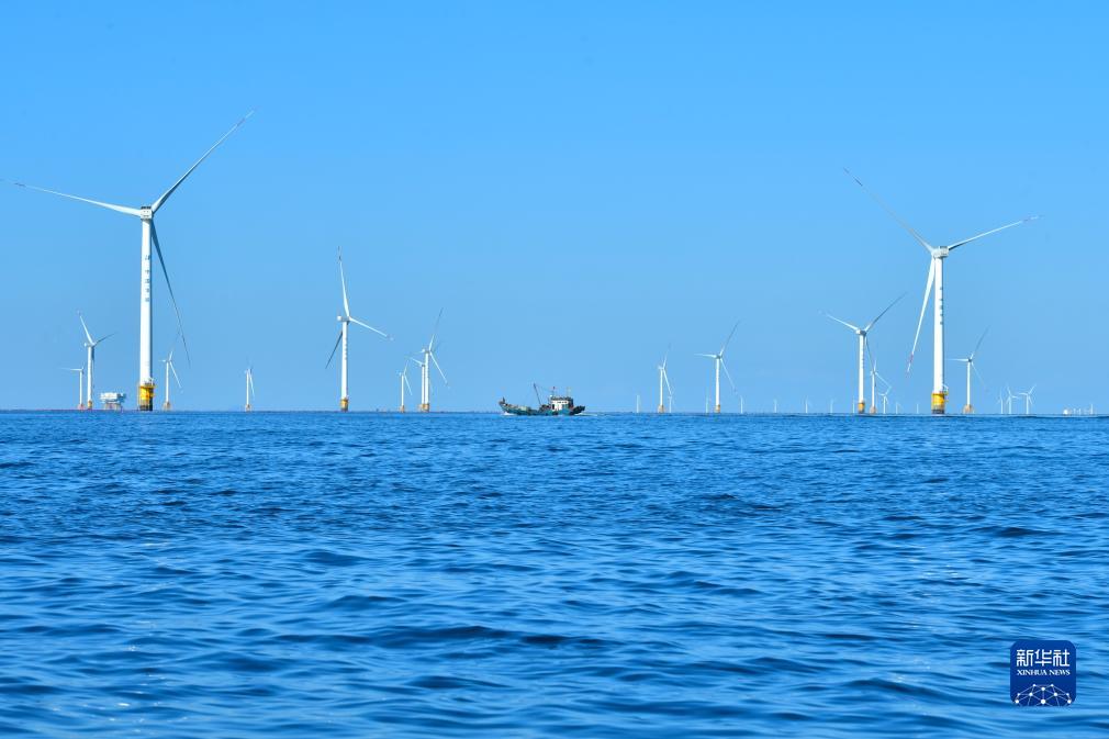 9月13日拍攝的大連莊河海上風(fēng)電項目。目前,大連莊河已建成海上風(fēng)電項目4個(gè),裝機容量105萬(wàn)千瓦。