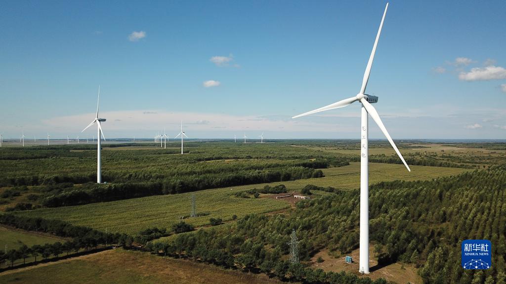 位于黑龍江省大慶市一風(fēng)電項目的風(fēng)場(chǎng)(2021年9月8日攝,無(wú)人機照片)。