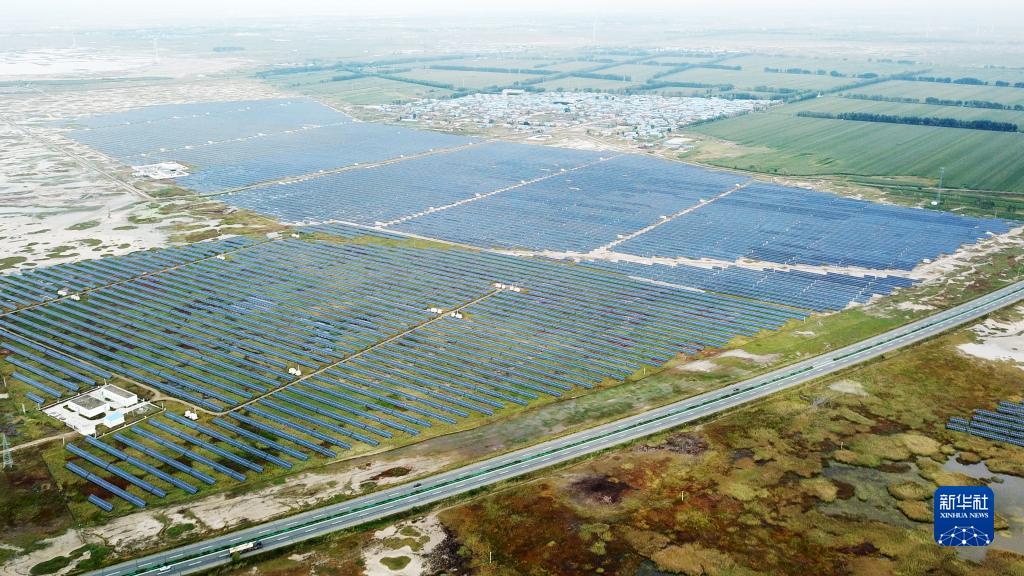 位于“石油之城”黑龍江省大慶市的一光伏發(fā)電項目基地(2021年9月9日攝,無(wú)人機照片)。