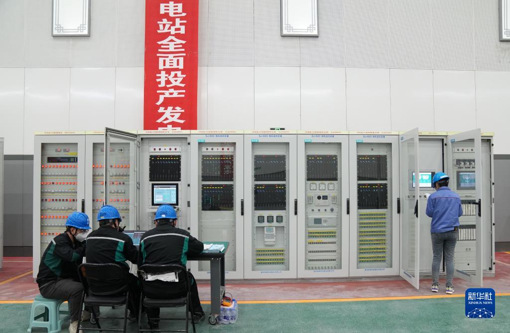 工作人員在國網(wǎng)新源黑龍江荒溝抽水蓄能電站地下廠(chǎng)房中進(jìn)行操作記錄(2022年6月29日攝)。