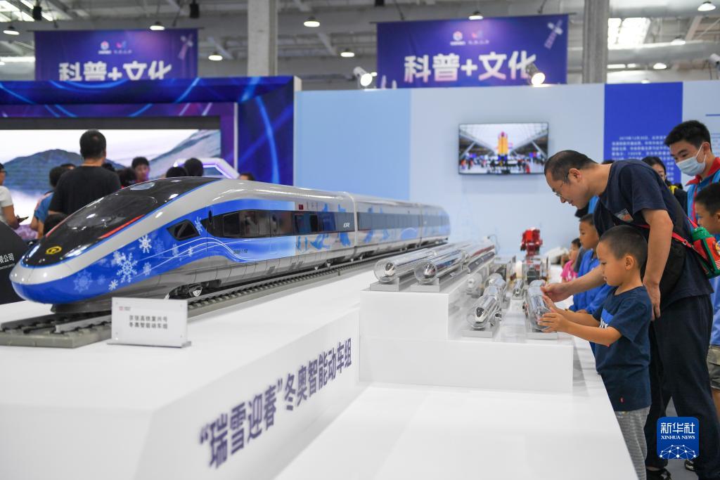 9月17日,在全國科普日北京主場(chǎng)活動(dòng)展區,參觀(guān)者參觀(guān)展出的高鐵模型。
