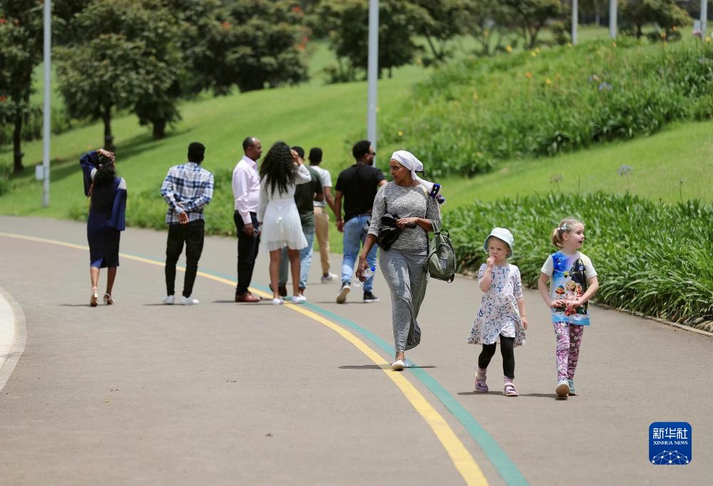 9月16日,人們走在埃塞俄比亞首都亞的斯亞貝巴的友誼廣場(chǎng)內。
