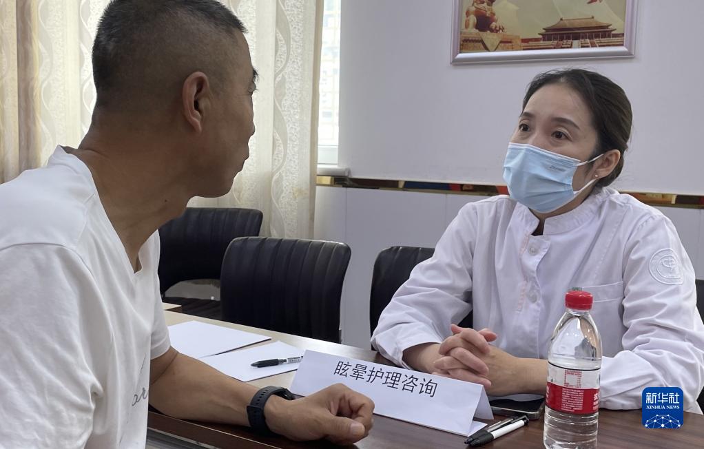 9月17日,北京友誼醫院耳鼻咽喉頭頸外科中心的護士長(cháng)苑黎娜(右)與患者交流。