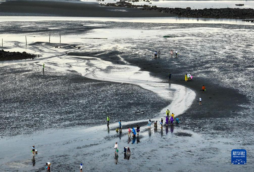 9月16日,游客在啟東“十里海灣”灘涂上游玩(無(wú)人機照片)。