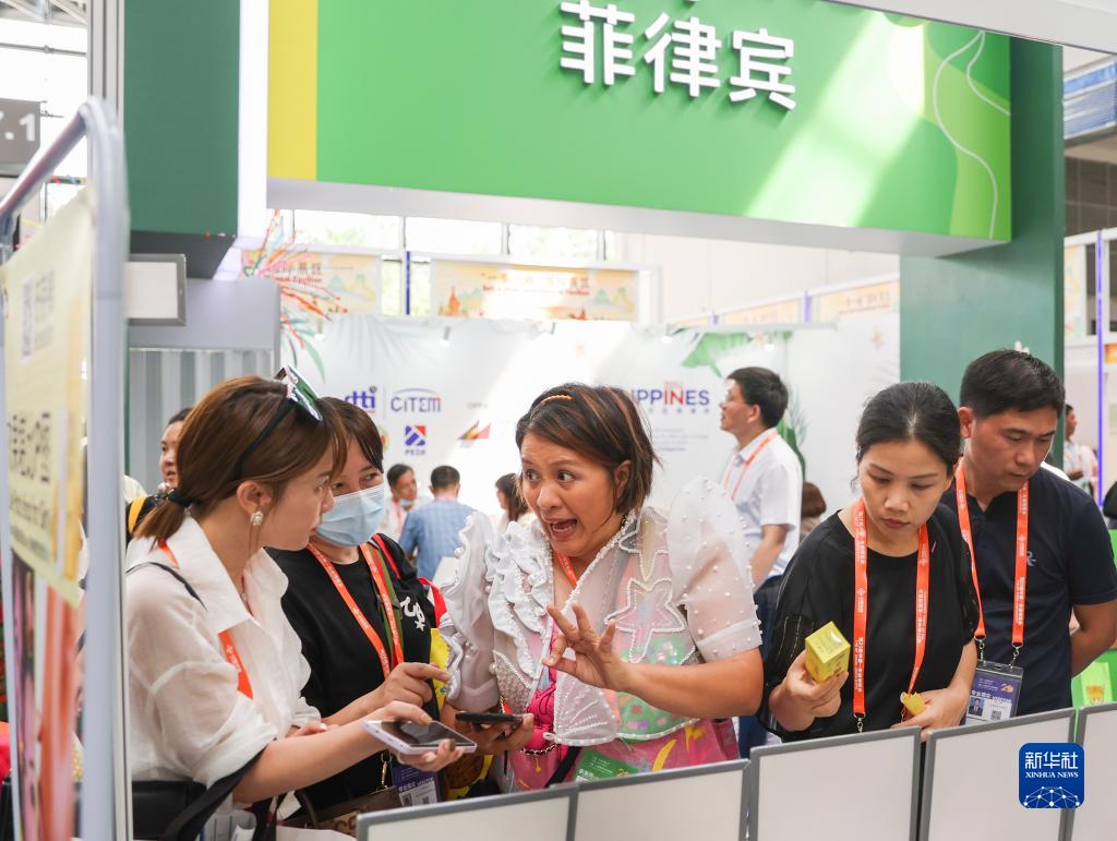 9月17日,在南寧國際會(huì )展中心,觀(guān)眾在東博會(huì )上選購菲律賓護膚品。