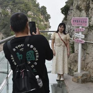 9月17日,游人在云臺山景區內游覽。