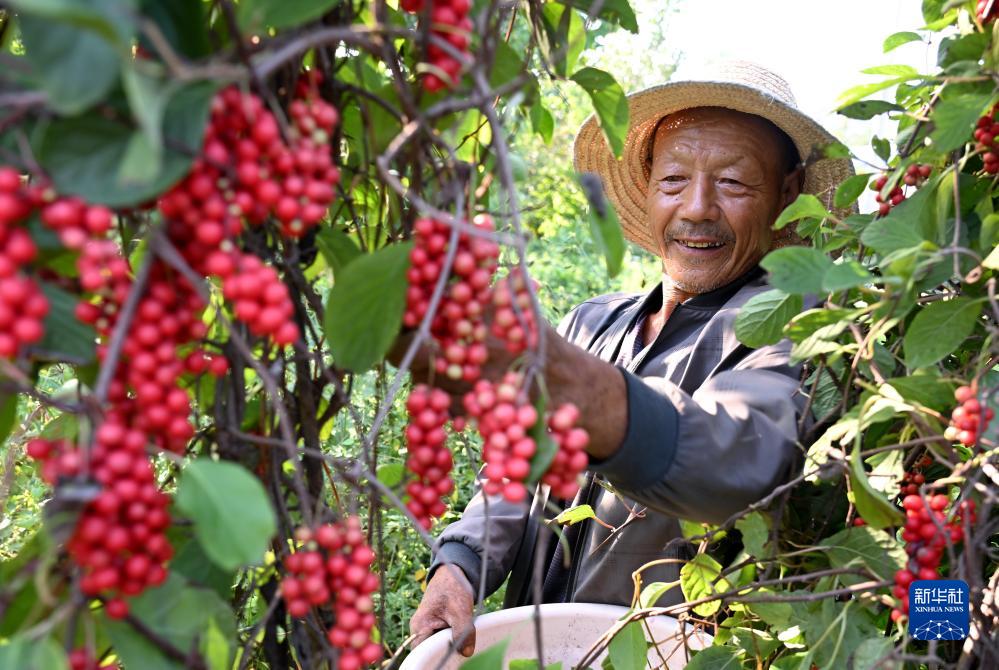 9月18日,唐山市豐潤區火石營(yíng)鎮東高莊村的農民采摘五味子。
