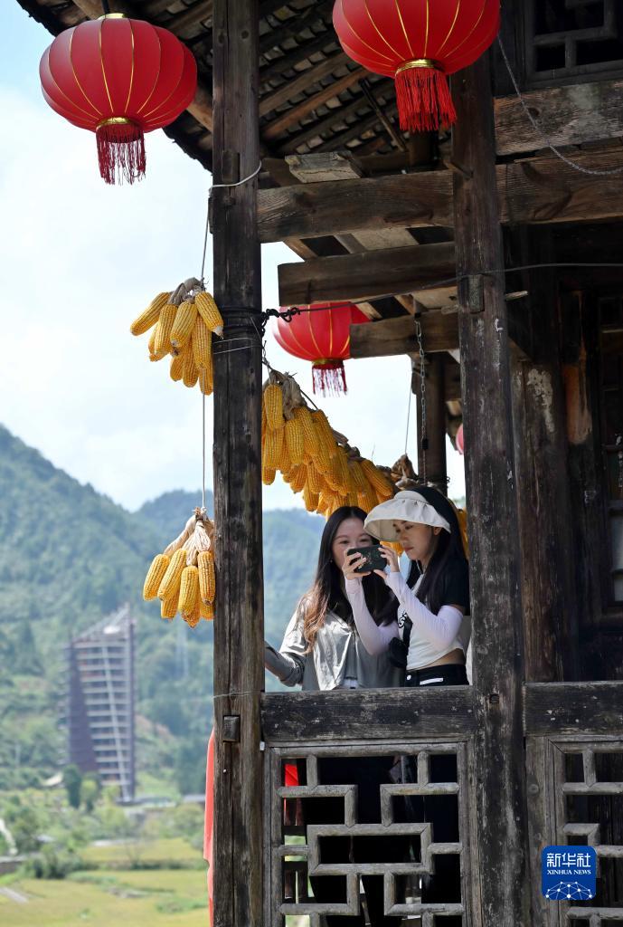 9月18日,游客在湖北省宣恩縣彭家寨游玩。
