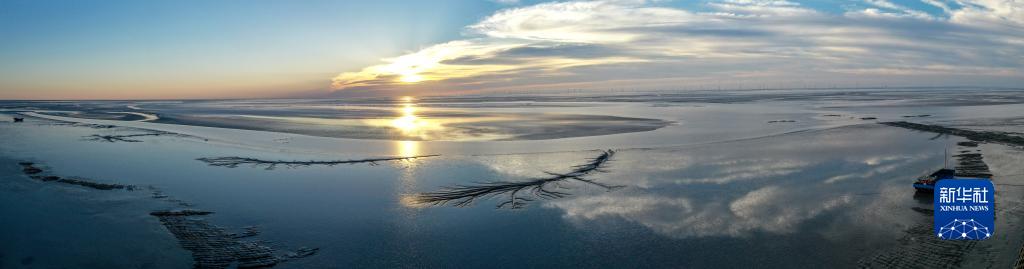晨曦下的鹽城東臺條子泥濕地(2023年9月1日攝,無(wú)人機照片)。