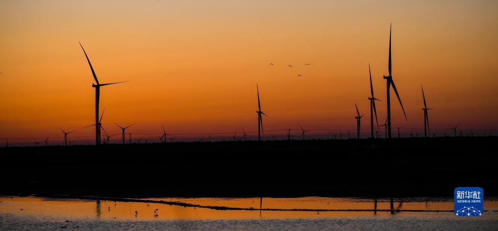 這是鹽城東臺條子泥濕地日落景色(2023年8月31日攝)。