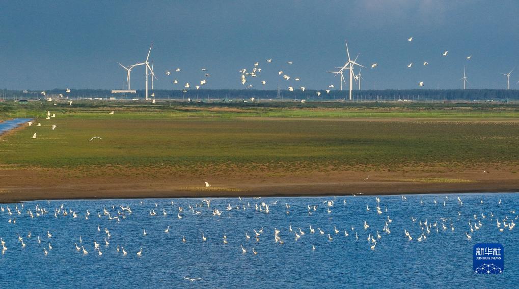 群鳥(niǎo)棲息在鹽城東臺條子泥濕地(2023年8月20日攝)。