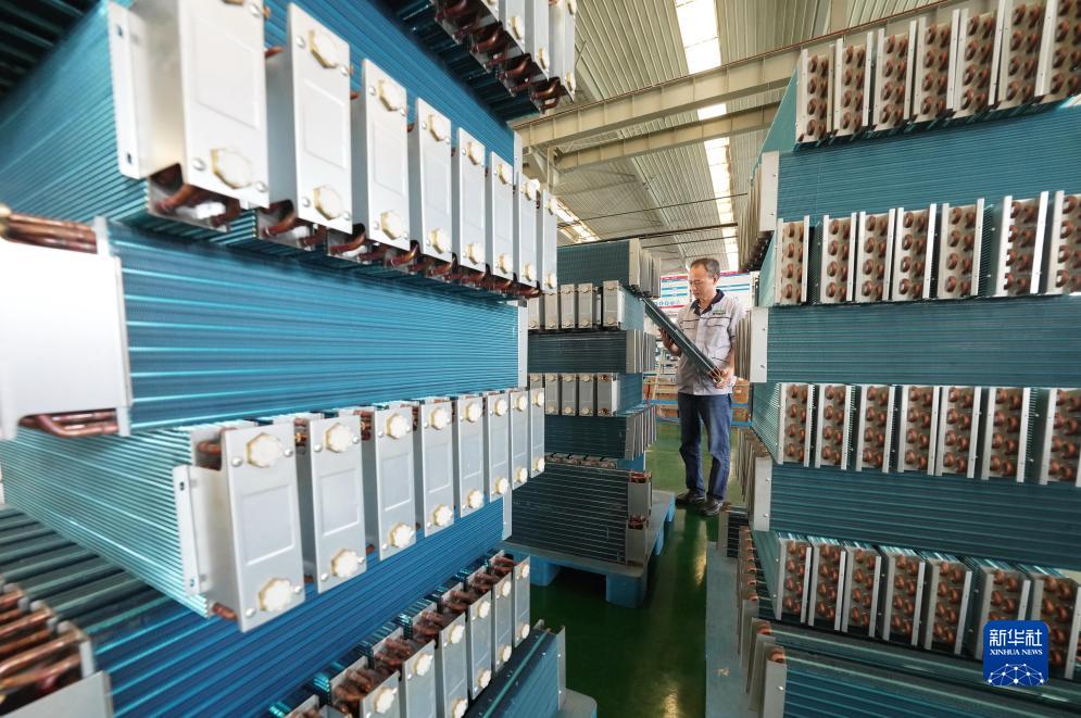 9月19日,工人在晉州市一家制冷設備企業(yè)的生產(chǎn)車(chē)間工作。