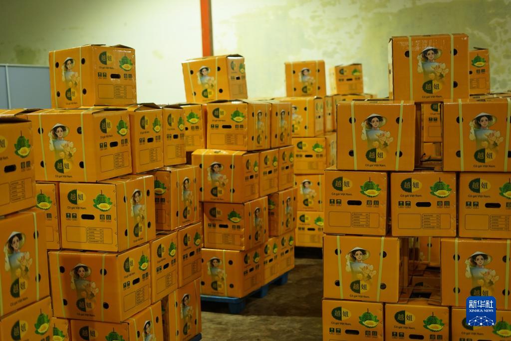 9月15日,在越南多樂(lè )省一家榴蓮加工廠(chǎng),包裝好的榴蓮在等待裝車(chē)。