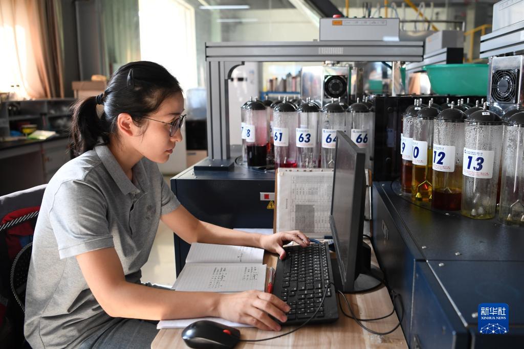9月20日,安美橋(南宮)羊絨制品有限公司的工作人員在染料配比實(shí)驗室內工作。