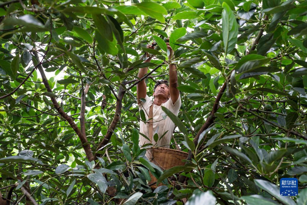 9月20日,孟連縣娜允鎮南雅村牛油果種植基地的農戶(hù)在采摘牛油果。