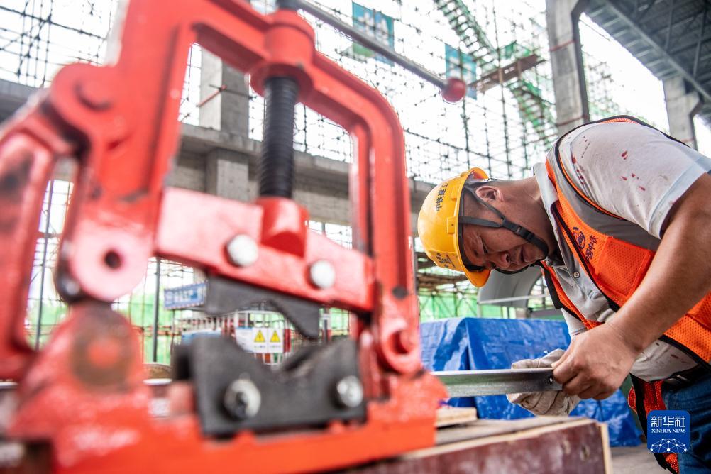 9月20日,工作人員在江津北站建設現場(chǎng)施工作業(yè)。