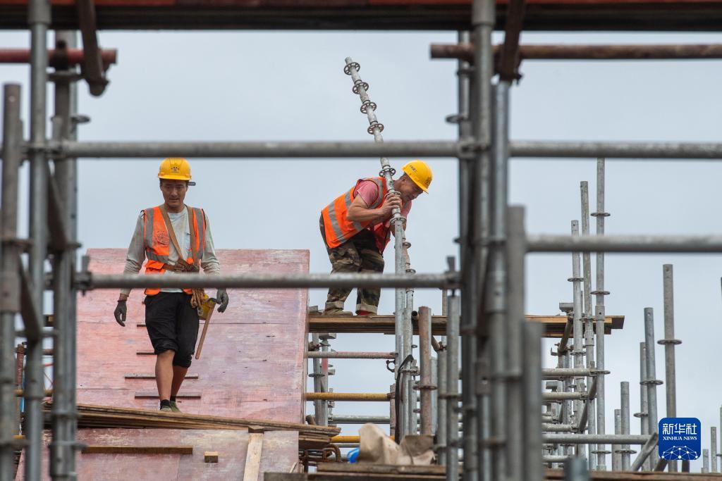 9月20日,工作人員在江津北站建設現場(chǎng)施工作業(yè)。