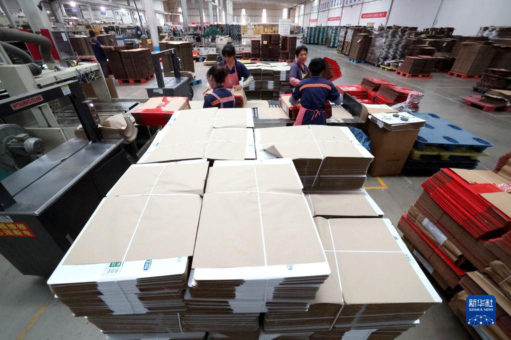 9月20日,行唐縣一家紙箱包裝生產(chǎn)企業(yè)工人在工作。