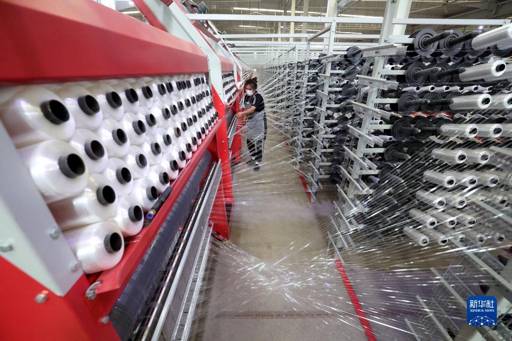 9月20日,行唐縣一家包裝生產(chǎn)企業(yè)工人在圓織車(chē)間內工作。