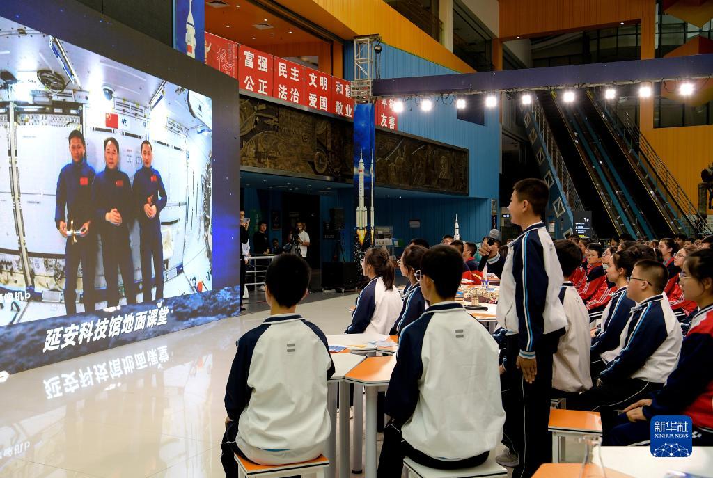 9月21日,在陜西延安科技館“天宮課堂”第四課地面課堂,學(xué)生在向航天員提問(wèn)。