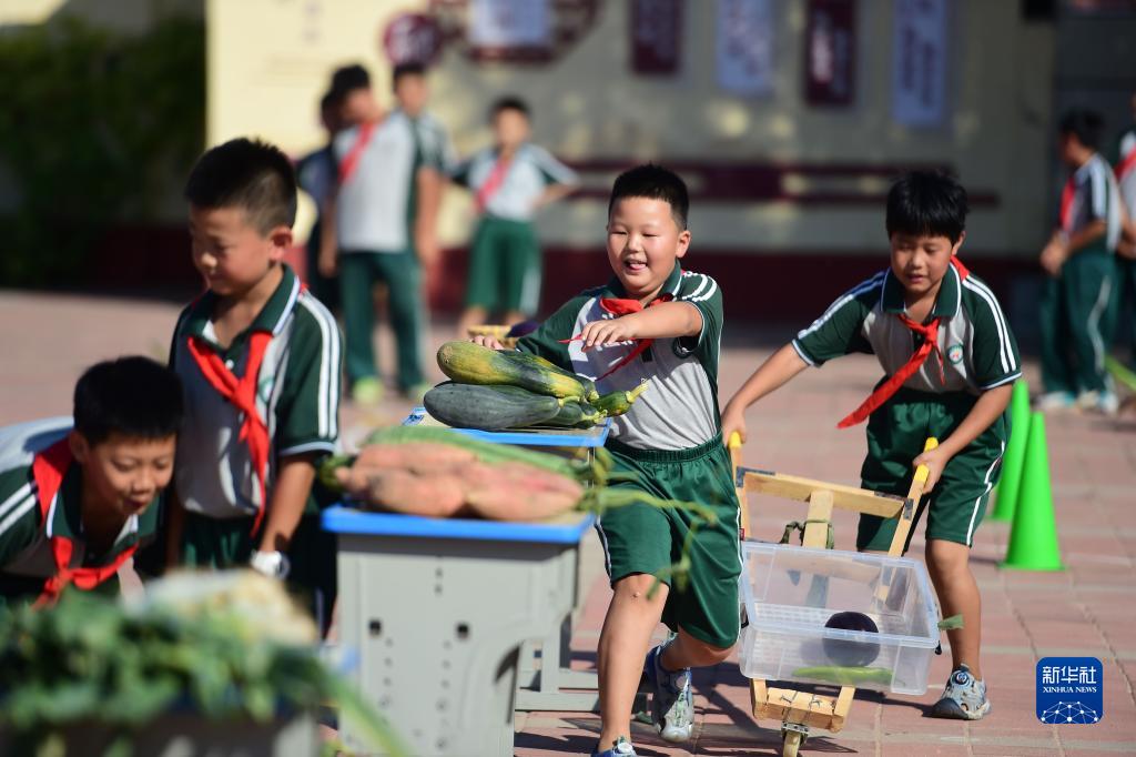 9月21日,滄州市新華區榮官屯小學(xué)的小學(xué)生進(jìn)行果蔬運輸比賽。